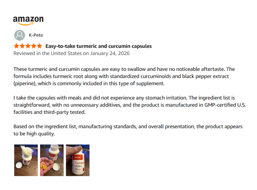 Been taking a capsule daily with breakfast. My knees feel less stiff in the mornings and it’s easy on my stomach.